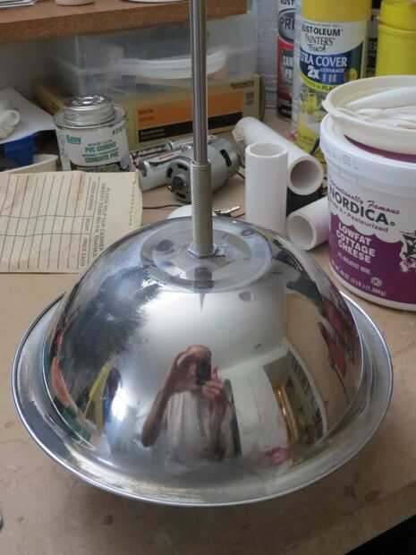 7. taladrar un agujero de 1/4" en el centro de la placa de su explosión. Más tarde agregué 2" roscado poste de cableado de una vieja lámpara. Esto evita que la placa de la ráfaga de inclinación y balanceo tanto en el lanzamiento.