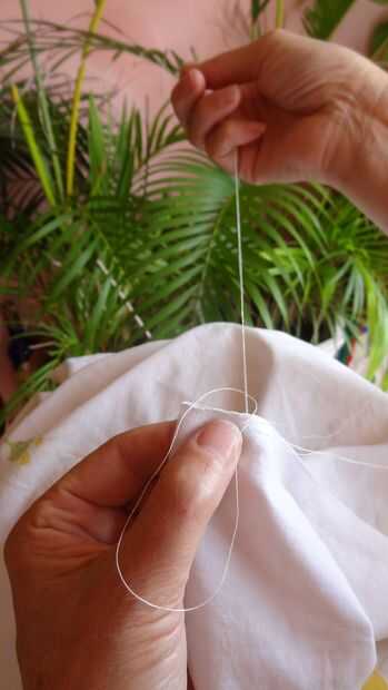 La puntada manta hace un borde incluso. Inserte la aguja y el hilo frente para atrás y al frente avanzando en la dirección que está cosiendo. Como llevas la aguja hasta la mitad a través de la tela (con la orientación de la aguja) círculo el hilo alrededor de la aguja. Mantener ese círculo de hilo con los dedos en su lugar. Levante la aguja a través de este. La puntada terminará formando una línea recta a los lados de las telas se unieron.