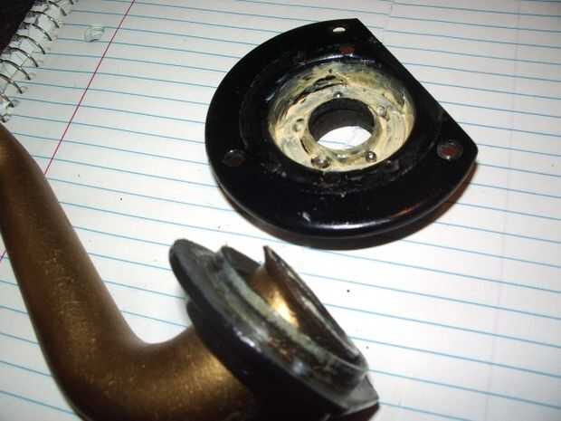 Todavía tenía un pequeño problema, sin embargo. Dos de los 5 rodamientos de bolas en la parte inferior del soporte faltaban. Uniformemente los restantes tres rodamientos en la sangría de rodamiento proporciona, y el brazo basculante que fue diseñado. Más tarde trabajé debajo de la placa giratoria, sin embargo, encontré los restantes dos rodamientos de bolas, ahora tenía un conjunto completo! Después de limpiar toda la grasa endurecida de la superficie de rodamiento, yo todo había lubricada con grasa de litio.