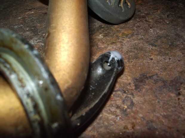Este soporte había agrietado lugar un tornillo de ajuste de la varilla de pivote (Foto 3). En mi investigación he encontrado que esto es un problema bastante común con este modelo en particular. Parece que todo lo que necesitas es cerrar la tapa de cierre una vez con el brazo en un registro y el soporte puede agrietar o romper. El brazo se proyecta de algún tipo de metal de la olla (el fabricante llamado "metal blanco"), por lo tanto no soldado con autógena o soldado, e intentar martillo cerrado sería más probable romper en muchos pedazos.