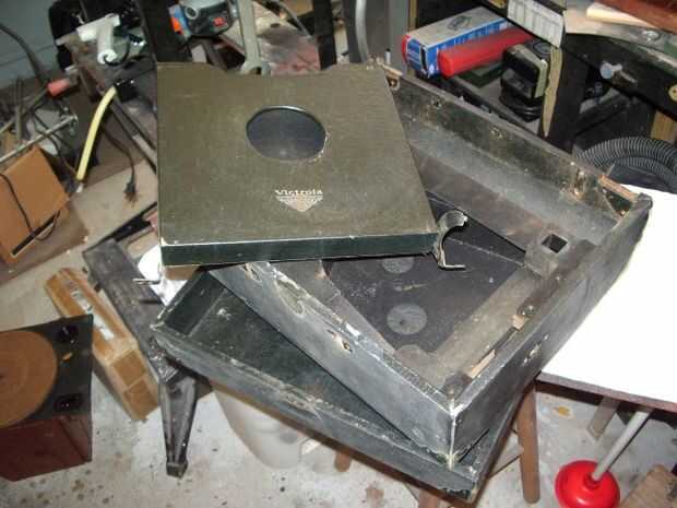 Este jugador tenía un registro de almacenamiento de bolsillo interior (que se inclina hacia fuera cuando abrió la tapa), y es el logotipo de Victrola, así que decidí dejarlo como estaba originalmente (Foto 1 y 2).