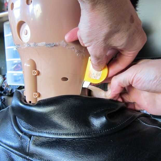 2.) corte la piel de la parte posterior del cráneo (por detrás de las orejas a la parte inferior)