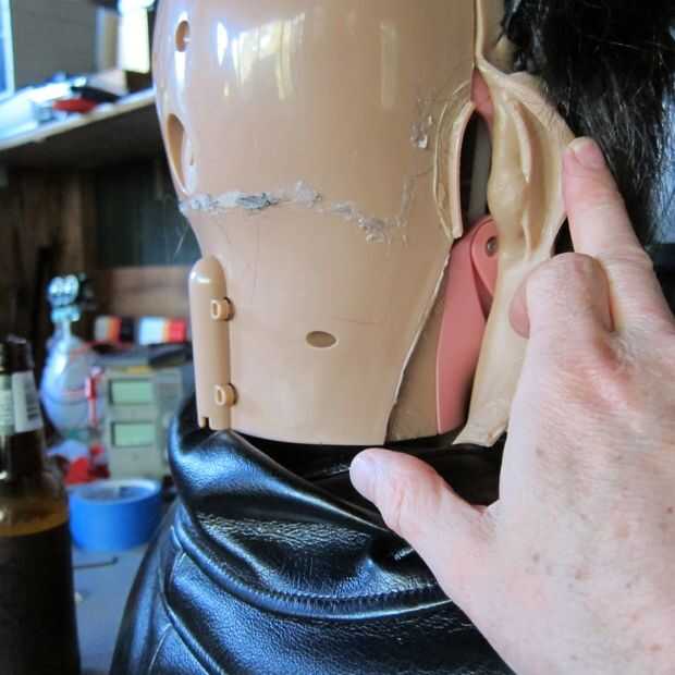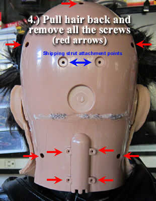 Nota sobre el corte de la piel: utilice una técnica similar a la disección-tire la carne hacia fuera con una mano y cortar con la otra mano, con una cuchilla muy afilada, lo más cerca del plástico como sea posible (mientras tira suavemente la carne hacia atrás). Sólo tire hacia atrás la piel de la pieza trasera del cráneo, justo lo suficiente como para liberar la parte posterior del cráneo, lo que conseguimos eliminar.