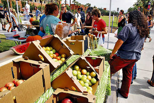 Tratamos de hacer un montón de compras en los mercados de agricultores locales, y además de ser local, el producto suele ser más barato y mejor degustación de lo que sería si lo compramos en el supermercado. En mi mente, no hay comparación entre un tomate de supermercado que maduraron en un carro en su camino a través del país, y una fresca vid cultivo ecológico madurado uno.