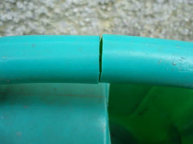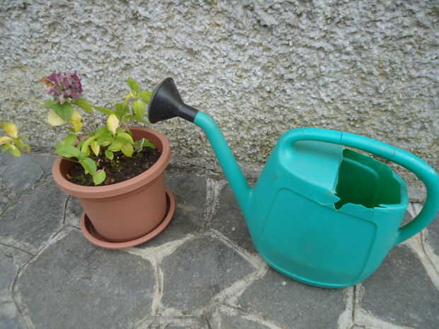 Una vieja regadera se rompe probablemente debido a las condiciones climáticas y los distintos empleos; su uso llegó a ser difícil pero puede ser reparado.