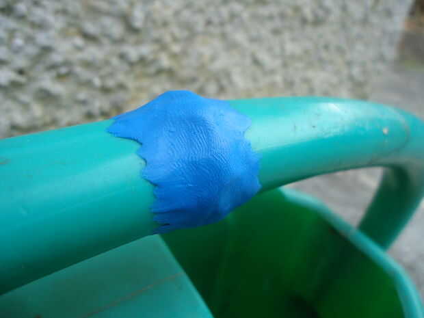 Con Sugru era posible efectuar una operación similar a la "soldadura" en correspondencia de la manija, conexión de las dos partes divididas de plástico, para que también con una carga máxima de 12 litros no se verifican desintegraciones. El tanque fue restaurado en parte, para permitir un fácil llenado de agua.
