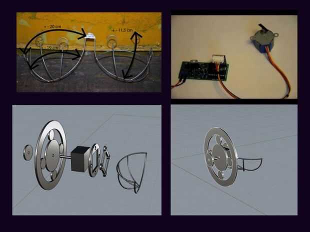 utilizando estructuras de alambre de carnaval, creamos piezas a cortar en el acrílico por el láser de corte para conectar el motor.