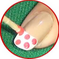 En esta punta francés, hacer pequeños puntos de color rojo. La elección del color es totalmente hasta usted. Puede tomar cualquier otro color como rosado o morado... pero recuerde que debe ser brillante y vibrante.