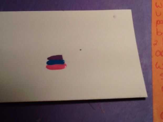 Tomar su esmalte de uñas y el diseño que deseas en el papel de la pintura. Usted puede tener tantos como desee, pero había utilizado solamente tres y sólo lo hizo un diseño simple (rayas).