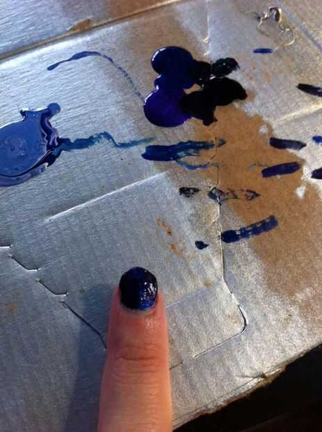 Aquí es cuando se pone un poco confuso y realmente ayuda si usted ha tenido experiencia de pintura. Lo que hice fue combinar el morado, azul y negro y conseguir el negro (en los lados de las uñas) en más. No necesitas usar un pincel de maquillaje o nada de eso, simplemente un pincel normal. Sólo dab suavemente la uña hasta que se sienta feliz con ella!