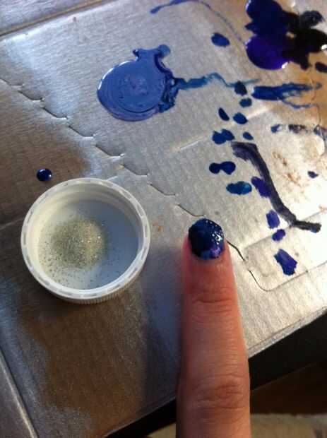 ¡ Hurra por estrellas de brillo! La forma más fácil, he encontrado, era verter el brillo en una tapa (o en la cartulina, si quieres) algunas recoger por pellizcarla y sólo Espolvorea el brillo en las uñas, tanto como usted desea! Sin embargo, no ponga demasiado o no podrás ver los colores debajo. Para que sea más fresco, puede usar brillo diferentes colores como verdes y azules y blancos, para hacer tus estrellas más exclusivo!