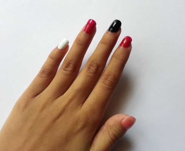 Aplique el esmalte de uñas transparente para la capa base. Después de la capa base se seque, aplicar 3-4 diferentes colores esmaltes de uñas, un color para cada uña. La combinación de colores debe ser buena. Deje que el esmalte se seque.