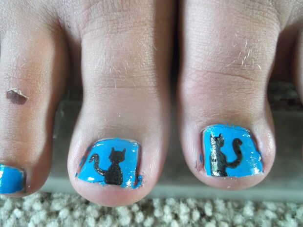 Tomar el quitaesmalte de uñas y dibujar en las sombras del gato. Usted debe esperar para que el pulimento de estar completamente seco antes de usar la pluma.