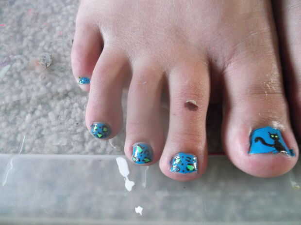 Uso de uñas art pen una vez más para delinear los puntos al azar. En las áreas vacías, puede Agregar puntos de cheetah descolorido y poco puntos para hacer que parezca más como guepardo impresión. Y con eso, el diseño está completo! Esperar una media hora antes de aplicar la capa superior, o bien se mancha el negro. Por favor tarifa y comentario! Realmente sería mi día :) Si te gusta este diseño, no dude de seguir y ver mis otros diseños! Gracias por ver y disfrutar de su nuevo diseño de uñas de gato.