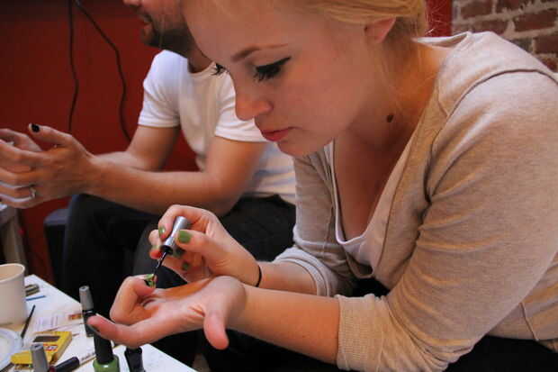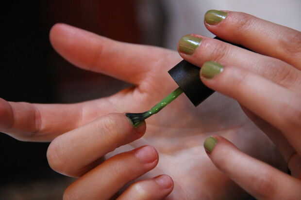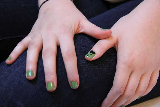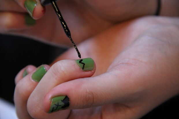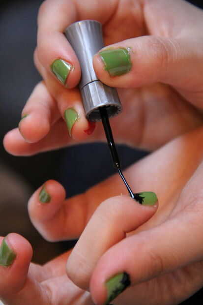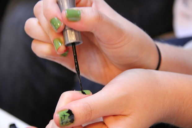Con un esmalte negro punta fina pluma (o un palillo y una mano constante) se dibujan en el pelo alrededor de la cutícula. Rellene.