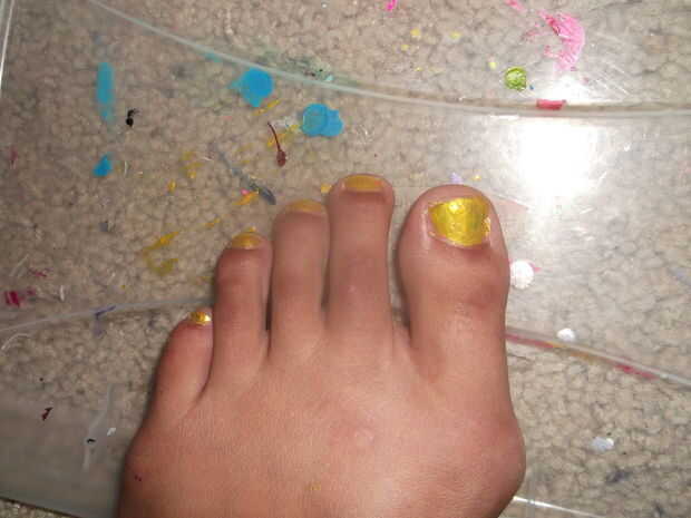 Pintar cada uña amarilla. Puede que necesite múltiples capas. Dejar secar totalmente.