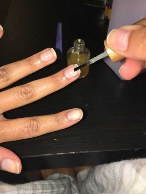 he decidido tomar un golpe en hacer algunas uñas.  Empecé con una simple toma en la manicura francesa.Fuentes:Base de Color (si desea uno, me gustan mis uñas así que quería cubrirlos)2 colores de esmalte de uñas de la elecciónUñas cepillo (me llevó u
