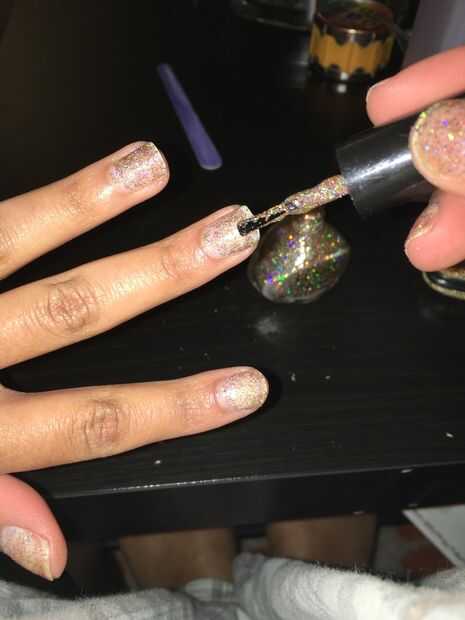 he decidido tomar un golpe en hacer algunas uñas.  Empecé con una simple toma en la manicura francesa.Fuentes:Base de Color (si desea uno, me gustan mis uñas así que quería cubrirlos)2 colores de esmalte de uñas de la elecciónUñas cepillo (me llevó u