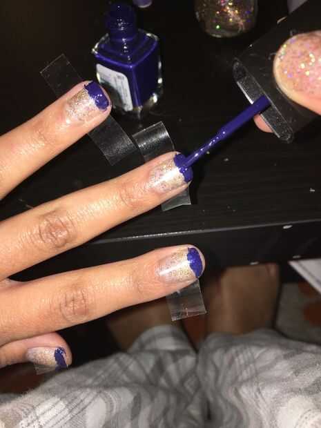 Uñas de punta francesa azul oscuro brillo oro (6 / 10 paso)
