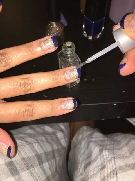 he decidido tomar un golpe en hacer algunas uñas.  Empecé con una simple toma en la manicura francesa.Fuentes:Base de Color (si desea uno, me gustan mis uñas así que quería cubrirlos)2 colores de esmalte de uñas de la elecciónUñas cepillo (me llevó u