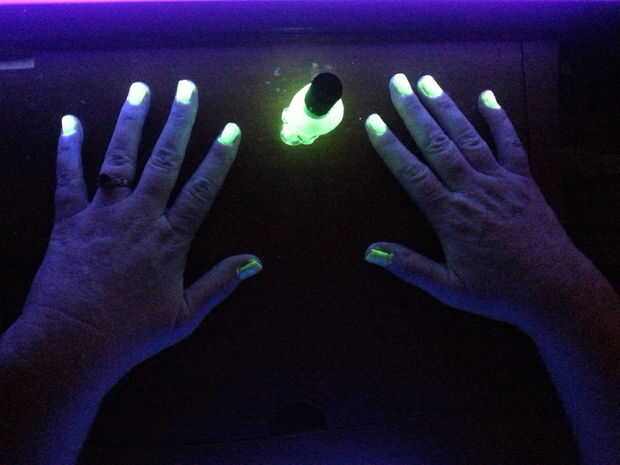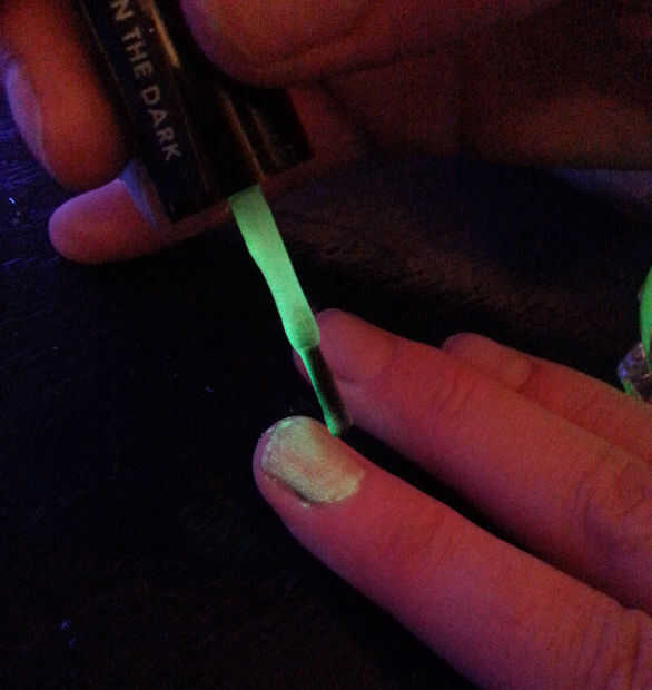 Aplique dos capas del brillo en el esmalte de uñas oscuro. Asegúrese de que la primera capa se seque totalmente antes de aplicar la segunda capa.