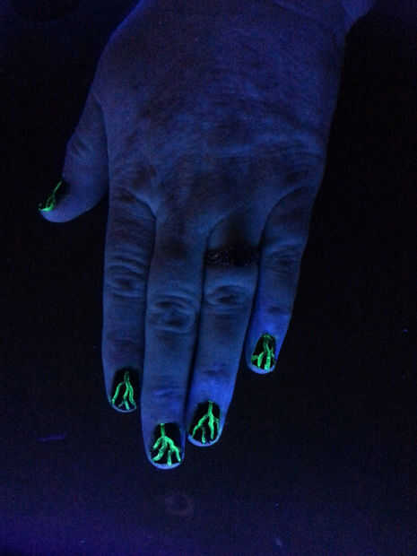 Combustible las uñas debajo de una luz.