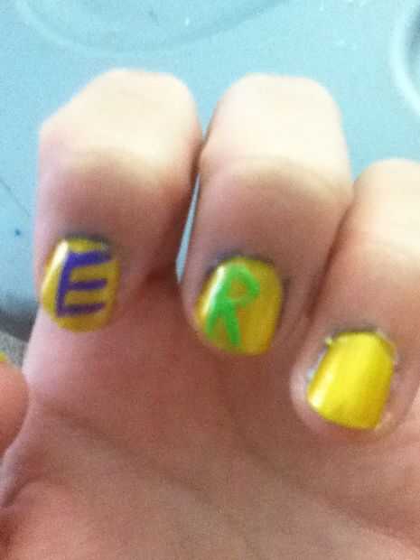 Por último, pintar un verde "R" en su dedo medio izquierdo.