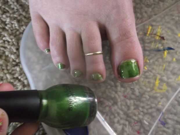 En primer lugar, asegúrese de que todos de su pulimento de clavo se quita antes de pintar. Luego añadir 2 o 3 capas de esmalte de su a cada uña.