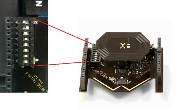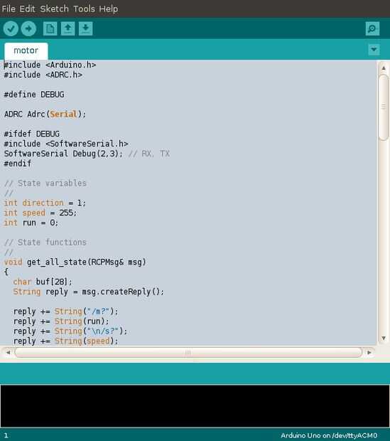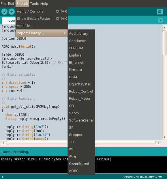 IMPORTANTE: para placas de Arduino que sólo tiene un UART, tales como la ONU, deberás desconectando ADRC escudo UART antes de descargar el programa ya que comparten el mismo UART como la ONU utiliza para conectarse a la computadora vía USB.