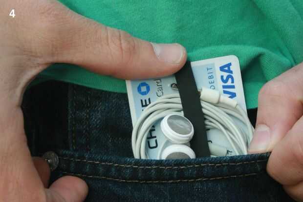 Aquí bastante sencillo. Inserte su uncard en el bolsillo hasta que usted decide utilizar los auriculares.