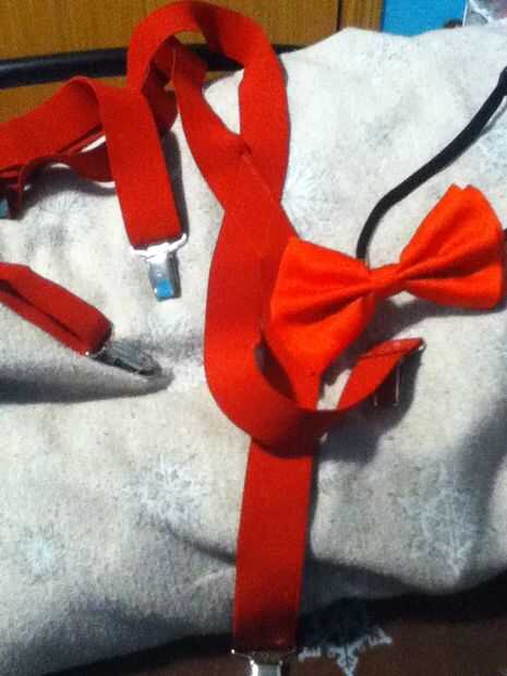 Ahora para once tienes dos combos de Bowtie/Liga. Usted puede ir con el esquema de color azul oscuro o el rojo. Fui con el rojo. Usted puede encontrar ligas en cualquier lugar realmente. En línea, en la tienda, mientras ahorro compras (lo que hice) o comprar una pajarita y tirantes en el tema. Los tirantes de los médicos son 1 pulgada anchas con hebillas de plata y un respaldo de "X".