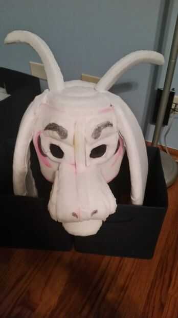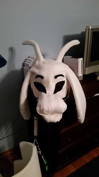 Una vez que termines esto, solo cubren todo de fieltro o piel sintética pegando con pegamento de aerosol más. Asegúrese de cortar los agujeros para los ojos y hacer las marcas negras alrededor de los ojos.