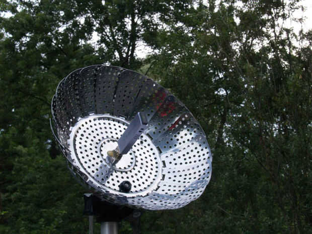 Seleccionar un agujero cerca del borde del plato y usar la broca para agrandarlo. Elegí una donde uno de los pies una vez había sido asegurado. Después sólo el perno desde el agujero a través de trípode y asegúrelo con la tuerca. Funciona muy bien.