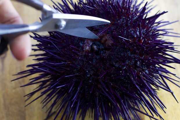 Uni Sushi DIY. Disección de erizo de mar en vivo en fotos (7 / 10 paso)