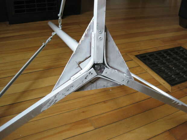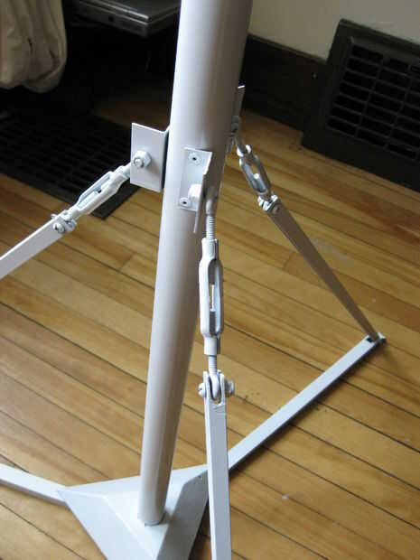 He utilizado ajustable tornillos perno (o tensor) para que el poste de centro puede permanecer nivel en cualquier tipo de terreno.
