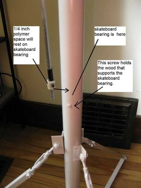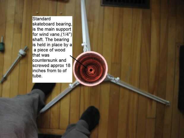 Coloqué un cojinete del patín (1/4" diámetro interno) dentro del tubo de 1 1/4", la veleta es apoyada por este cojinete con el uso de la varilla de 1/4".