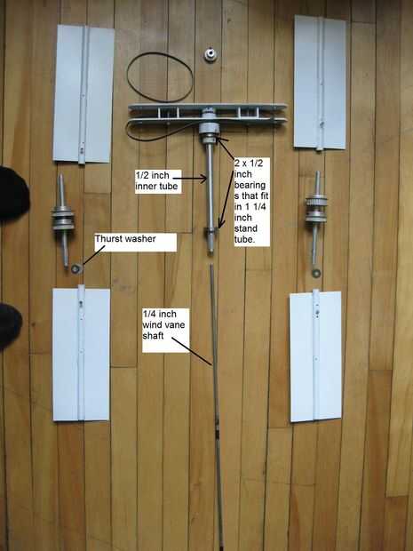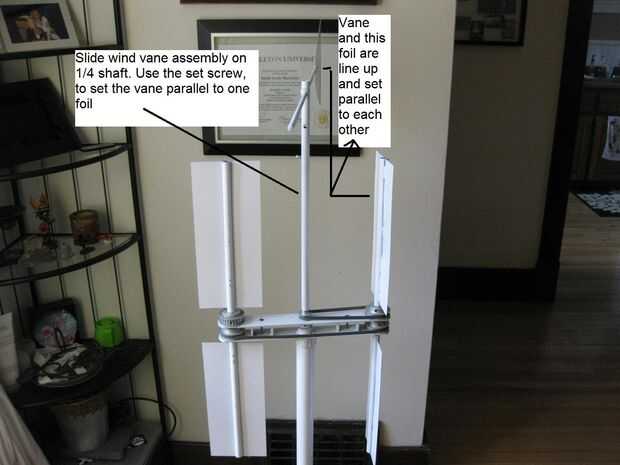 Utilice el tornillo o perno para fijar la paleta paralela a 1 lado (en la foto la paleta se establece un paralelo a la lámina a la derecha) en este caso el aerogenerador siempre gire hacia la derecha