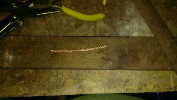 Coloque la cadena sobre la avril u objeto por igual y martillo la plana de aproximadamente 2 pulgadas de la cadena. Luego corte la pieza 2 pulgadas el resto del filamento.