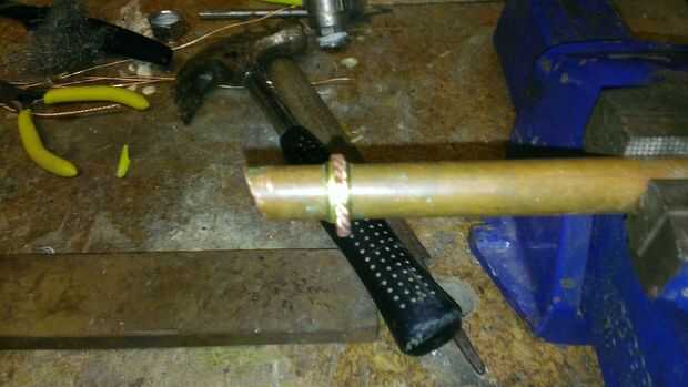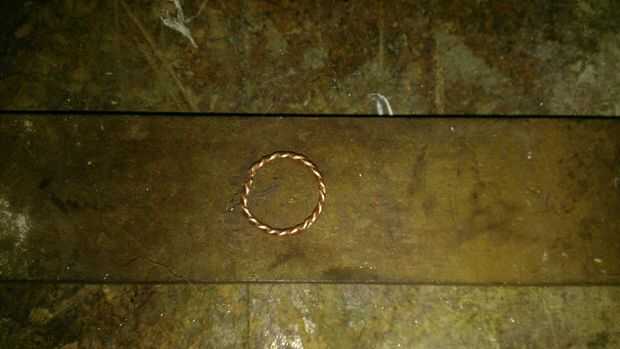 Para forma el filamento en un anillo puede tirar la hebra alrededor de un olivo de un tubo de 15 mm, accesorio que fue perfecto pero puedes usar lo que cada vez se adapta mejor. Después de formar el anillo de corte el exceso por lo que es una banda perfecta con un corte en ella.