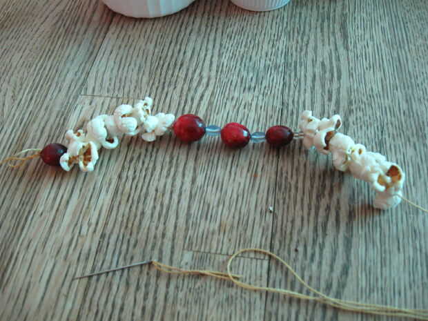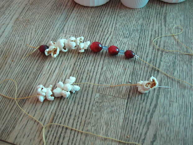 Me pareció más fácil para unos trozos de la cadena del hilo de rosca, luego empuje hacia abajo. Esta hecha para menos tiempo pasó empuja cosas la longitud de la guirnalda! Si las palomitas de maíz fue "pulpo" en forma - un pedacito redondo en la parte superior donde apareció el núcleo - parecía funcionar mejor piercing primero a través de la punta redonda y con un movimiento suave de giro para obtener a través de los bits de núcleo en el otro lado.