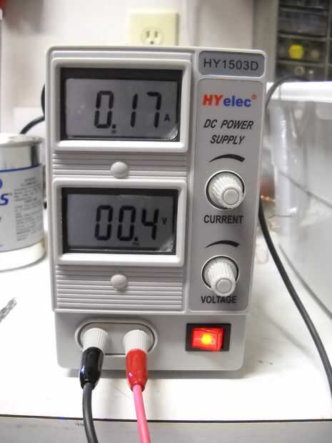 -Ahora puede conectar el rectificador y enciéndala. Tiendo a obtener los mejores resultados con la lectura de amperios en sobre.1 por cada pulgada cuadrada de superficie pintada. Para esta pieza, mi disco voltaje está ajustado para unos.3-.4 voltios.