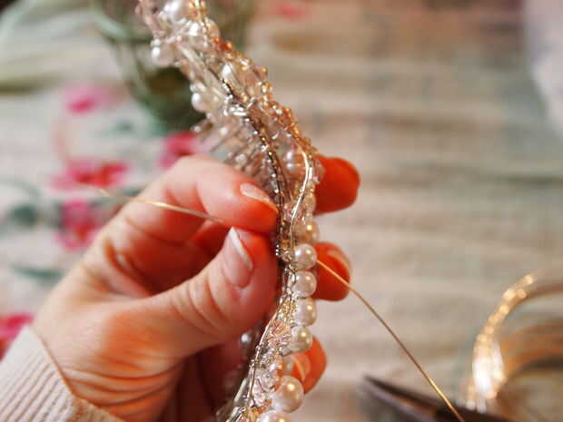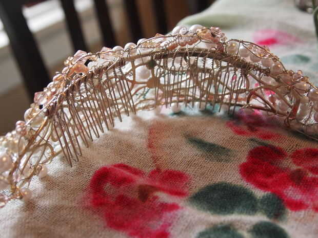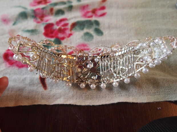 Básicamente utilicé un alambre grueso para garantizar las dos peinetas de alambre hacia la pieza principal - y los asegurados sólo en la parte superior de los peines.