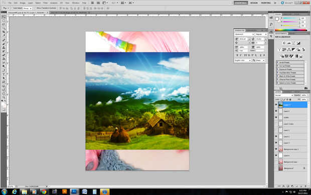 Ahora que su fondo se ha ido, traen una capa del fondo elegido. Ir con algo natural. Presione CONTROL + T a la medida de su experiencia como desee y arrastre la capa encima de un blanco. Ahora debe tener la naturaleza a tu alrededor.