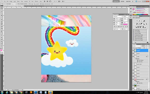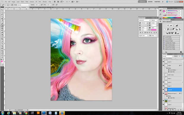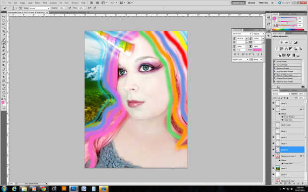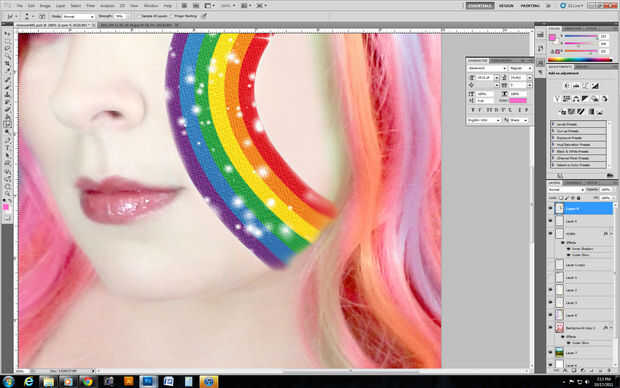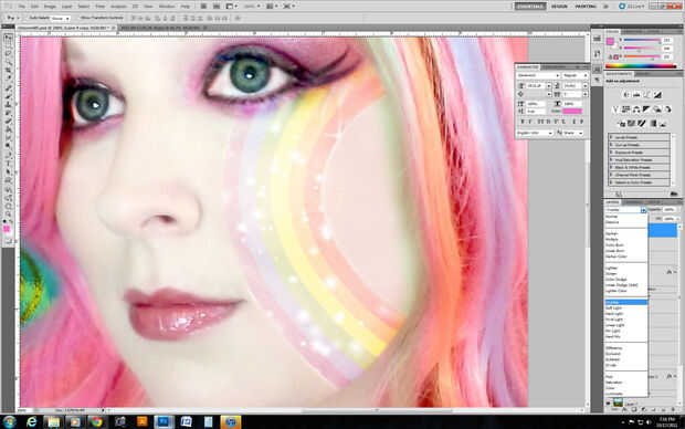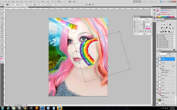 Para el arco iris de la mejilla, elegí una imagen que me gustaba y lo trajo a mi imagen. Borré la mayoría, dejando sólo los fundamentos de lo que quería. Hice el CONTROL + T para transformar y tamaño a la posición que me ha gustado mucho.