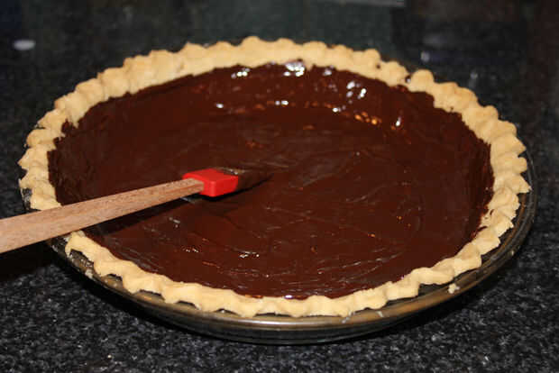 Corteza: harina para todo uso, Crisco, mantequilla, sal, chocolate negro (una sogginess la capa)