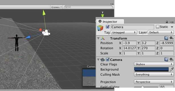 Cambiar la posición de la cámara en X eje 14, eje de Y a 270 y el eje de Z a 0.