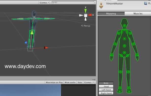 Haga clic en todo verde punto del círculo para mapeo de toda la conexión de hueso en modelo 3D. Compruebe los músculos trabajan en la ficha de los músculos.