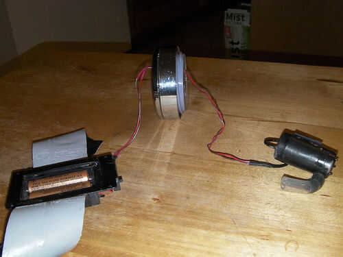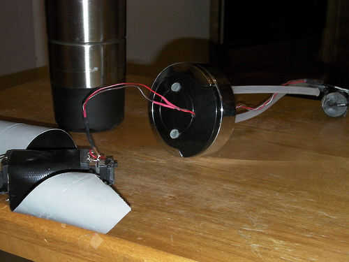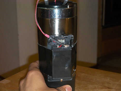 A continuación, volver a soldar la batería a una longitud de 7 pulgadas de alambre, caber dentro de alguna tubería del encogimiento y había conectado a la bomba de agua, después de que me había alimentado el alambre a través de la tapa del termo.