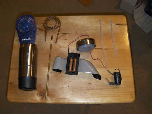 mi lugar de trabajo es bastante caliente, y todo lo que tengo para ayudar a enfriar abajo durante el día es un ventilador pequeño de 4" y un sistema de soplador industrial aspirando el aire caliente del edificio principal.Cansado del calor, empecé a