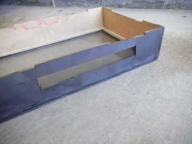 2. un agujero se debe cortar en la placa base por el aire para poder moverse en el coche. Esto fue realizado con la herramienta oscilante y fue sobre el mismo ancho que el pedazo de tela.